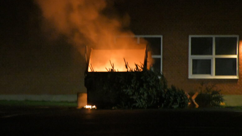 Store flammer fra brand i container ved skole