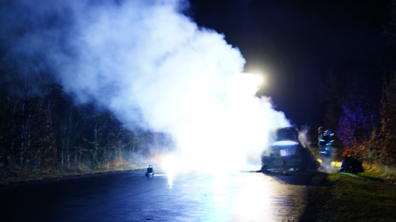 Kæmpe røgskyer: Bil i flammer på landevej