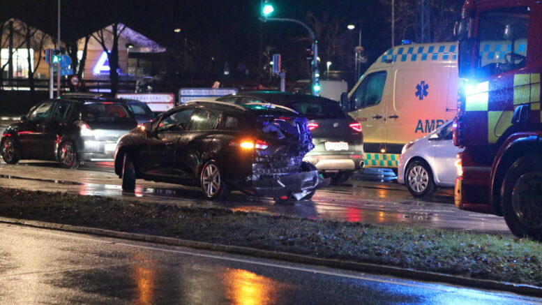 Uheld med flere biler spærrer kryds: Ambulancer ankommet