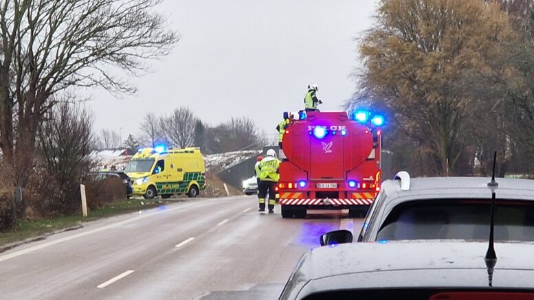 Personbil og lastbil i uheld: Brandvæsen og ambulance ankommet til stedet