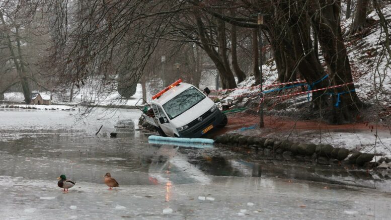 Spejlglat sti sender kommunebil på afveje: Sad fast i frossen sø