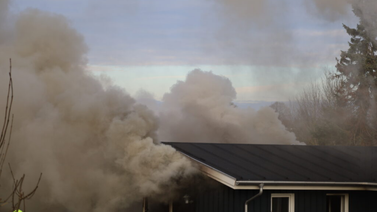 Store røgskyer fra brand i garage: “Luk døre og vinduer”