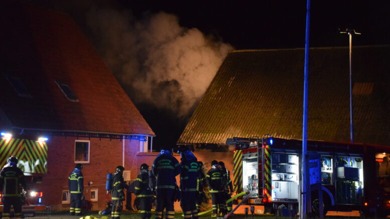 Brand i staldbygning: Røgskyer vælter ud