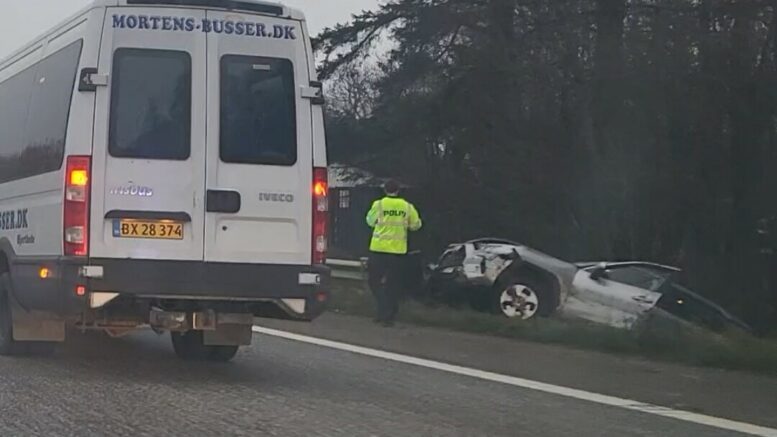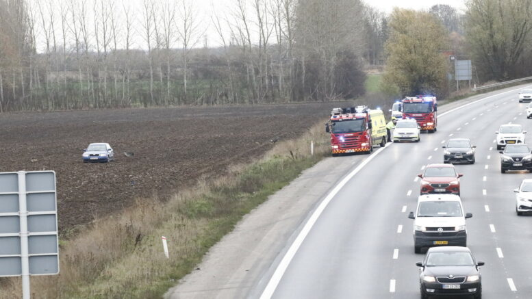 Bil havner på mark efter uheld på motorvej