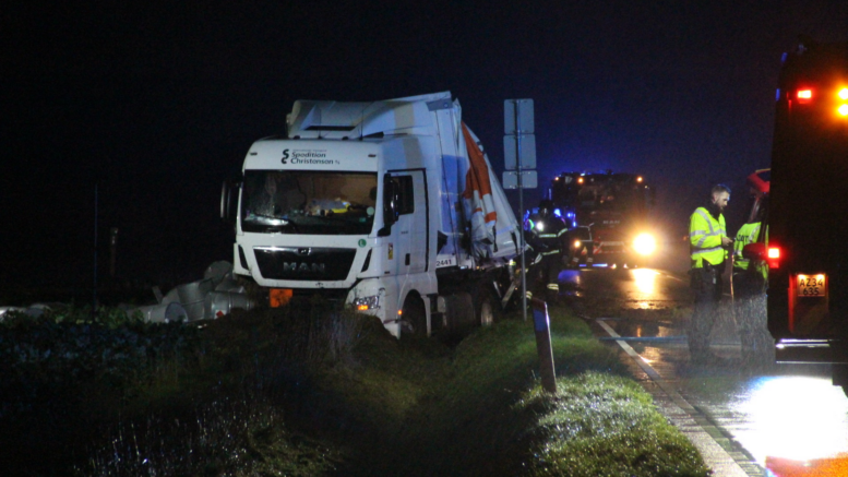 Vej spærret efter lastbil taber kemikalier: Sikkerhedsafstand på 50 meter