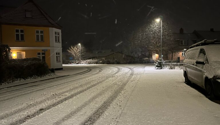 Spejlglatte veje – sneen er kommet til Midtjylland