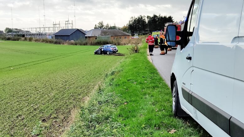 Bilist kører gennem indhegning: Kørt væk i ambulance