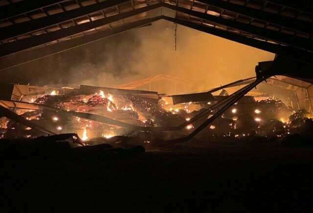 Lade med tusindvis af bigballer gik op i flammer: Brænder stadig