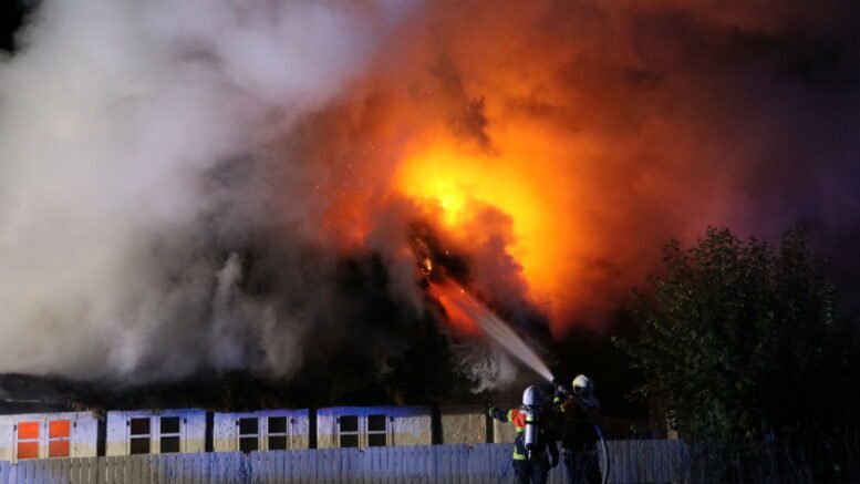 Brand i stråtækt hus: Flammerne er flere meter høje