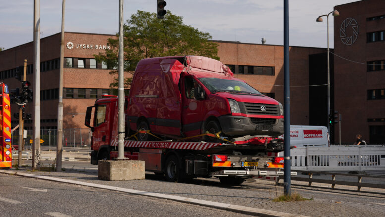 Bil sidder fast ved rampe: Chauffør hjulpet ud