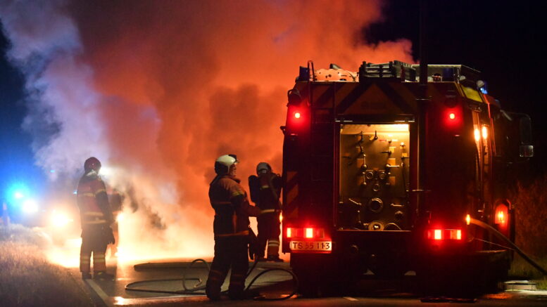 Voldsom bilbrand: Brandvæsnet kæmper mod flammerne
