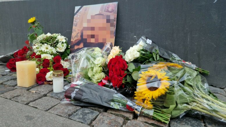 Blomster og lys ved drabssted