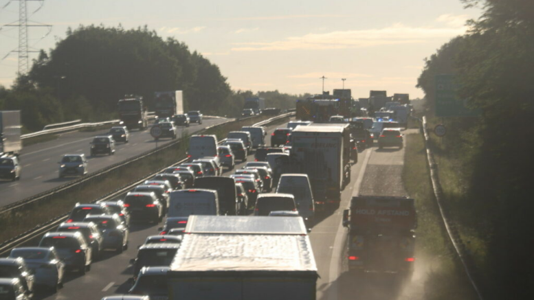 Lastbil skaber lang kø på Holbækmotorvejen