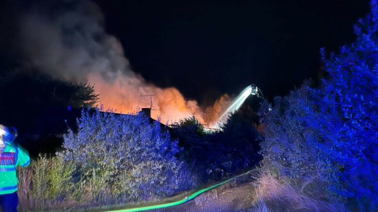 Industribygning i flammer: Tre husstande evakueret