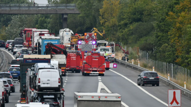 Lastbil påkører skiltevogn på Fynske Motorvej