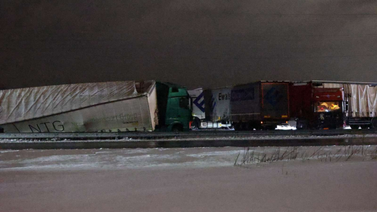 Grisetransport vælter på motorvej – kort efter bliver en ambulance påkørt: HELT SPÆRRET