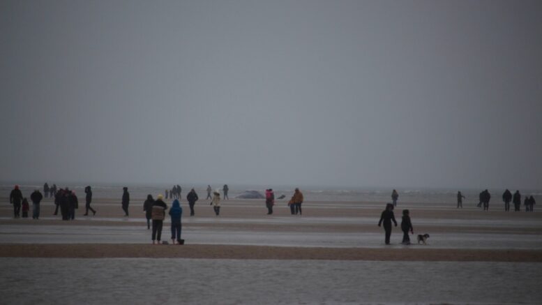 Død kæmpe skyllet op: Mange nysgerrige stimler sammen ved dansk strand