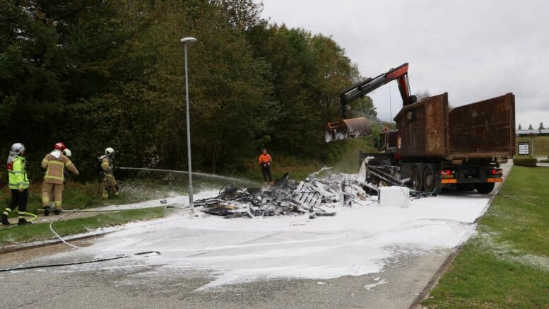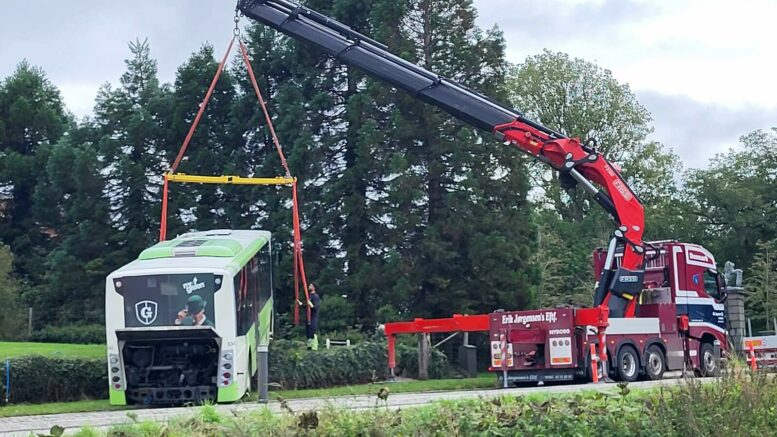 Bus med passagerer kørt op over stengærde: Måtte hjælpes fri af kran