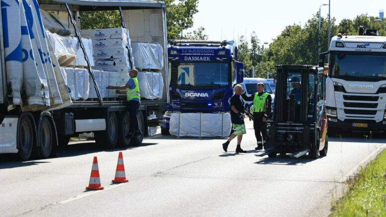 Lastbil har tabt gods ved IKEA: Det tager lang tid at få ryddet op!