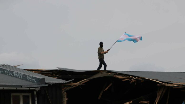 Demonstranter på taget af hus: En er anholdt!