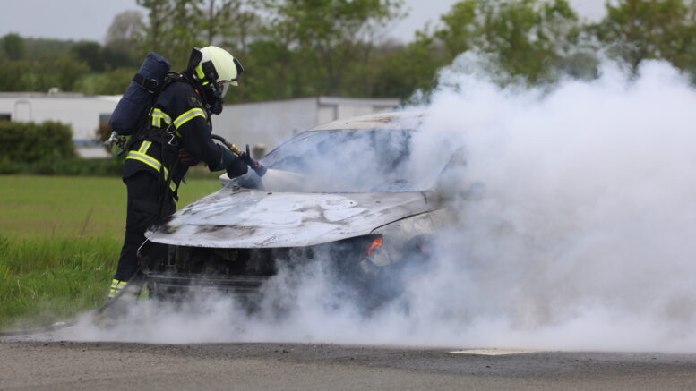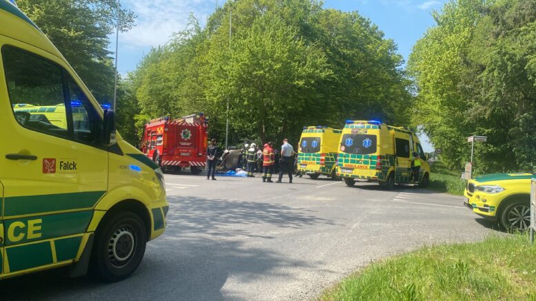 Færdselsulykke i Rødby: Den ene bil ligger på hovedet