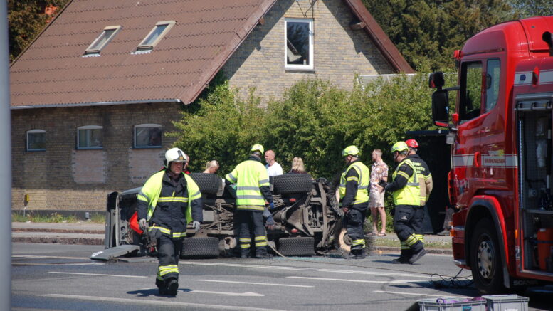 Se video: Fejemaskine væltet på Amager