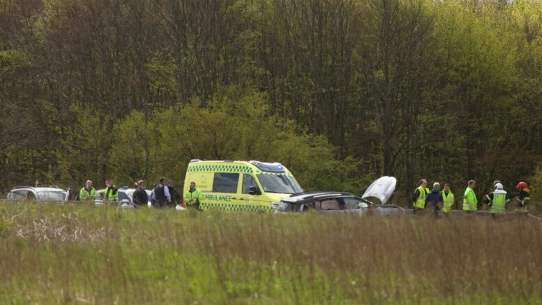 Færdselsuheld: Autocamper har ramt tre personbiler