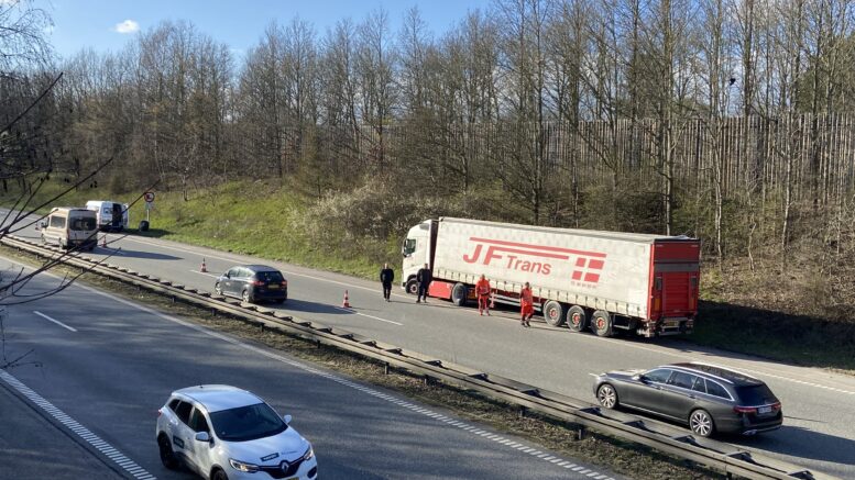 Lastbil havareret på Fynske Motorvej: Spor spærret