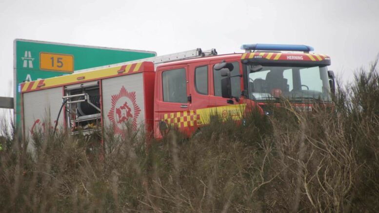 Ved sammenfletning på motorvejen: Brand i trailer!