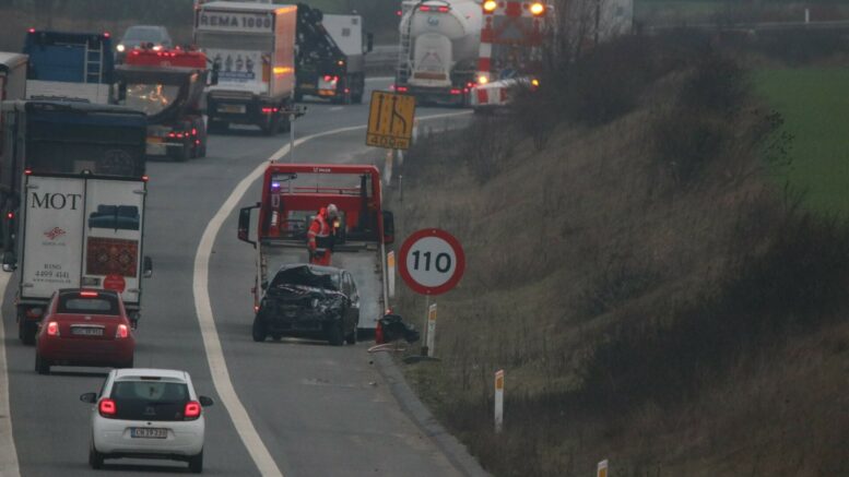 Bil kørt ind i skiltevogn på motorvej