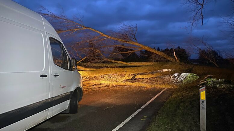 Se video: Træ spærrer vej mellem Falster og Lolland