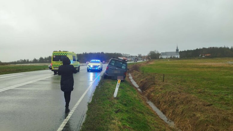 Bil tæt på at vælte i grøften: Føreren kørt på hospitalet