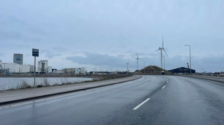 Brand i vindmølle nær København