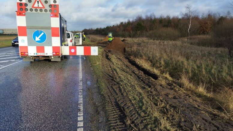 Lastbil kørt i grøften: Slog hul på dieseltanken