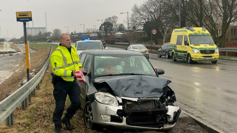 Færdselsuheld i Skibby: Ældre kvinde sad fast i sin bil