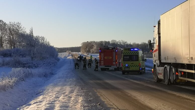 Bilist kørt ind i lastbil i Jylland: Teknisk fastklemt