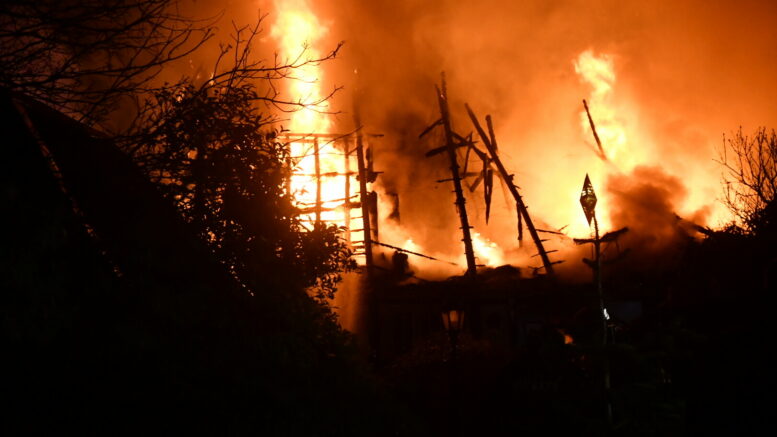 Brand på Fyn: Voldsomme flammer på villa med stråtækt tag
