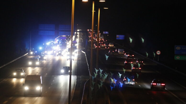 Færdselsuheld på Køge Bugt-motorvejen: Tre biler i nødsporet – gevaldig kø
