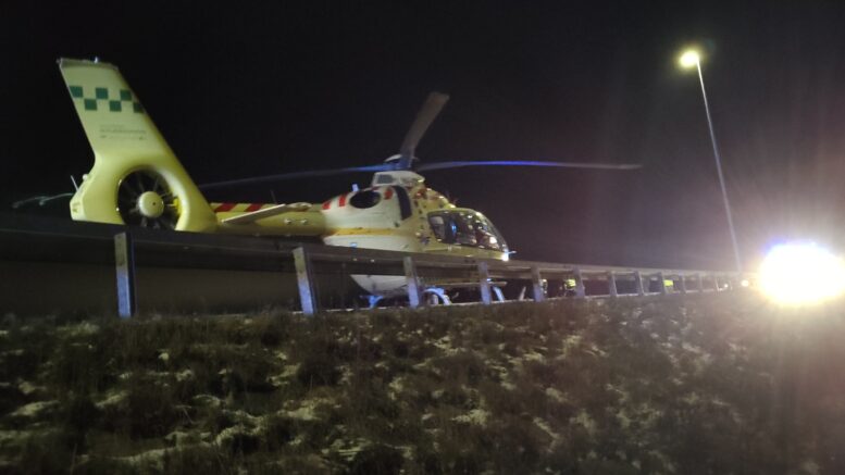 Lægehelikopter til stede efter uheld: Bro er spærret