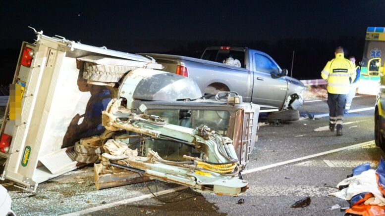Færdselsuheld i Haslev: Trailer væltet på siden