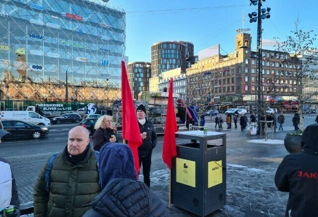Se billederne: Stillads-arbejdere demonstrerer på Rådhuspladsen