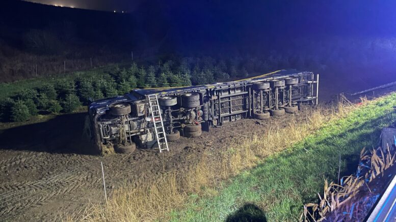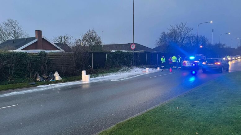 Uheld nær Silkeborg: Lastbil skredet ud i grøft