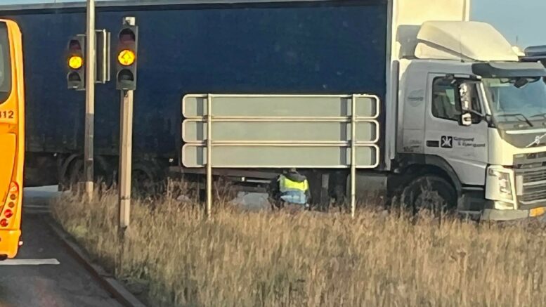 Den er gal på Køge Bugt Motorvejen: Lastbil holder på tværs – spærrer tilkørsel