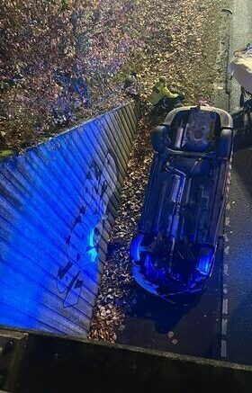Solo-uheld: Bil kørte ud over skrænt – landede på taget