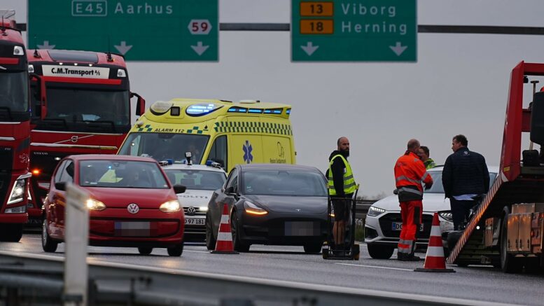 Uheld på Østjyske Motorvej: Flere biler involveret – kæmpe kø!
