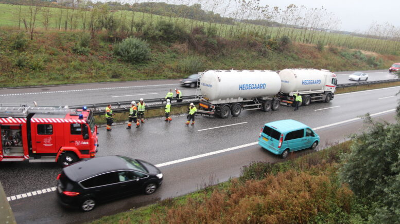 Uheld på motorvej: Lastbil ramt autoværn – venstre spor spærret