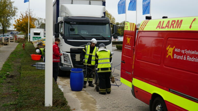Lastbil kørt ind i vejarbejde: Dieselspild ved Næstved Megacenter