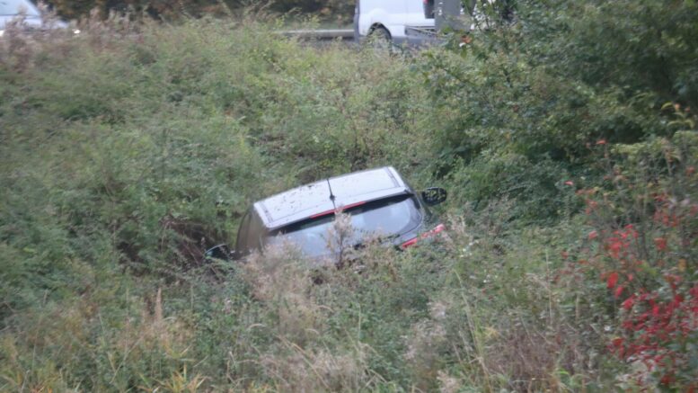 Se video: Bil kørt ud over autoværn på motorvej – der er LANG kø