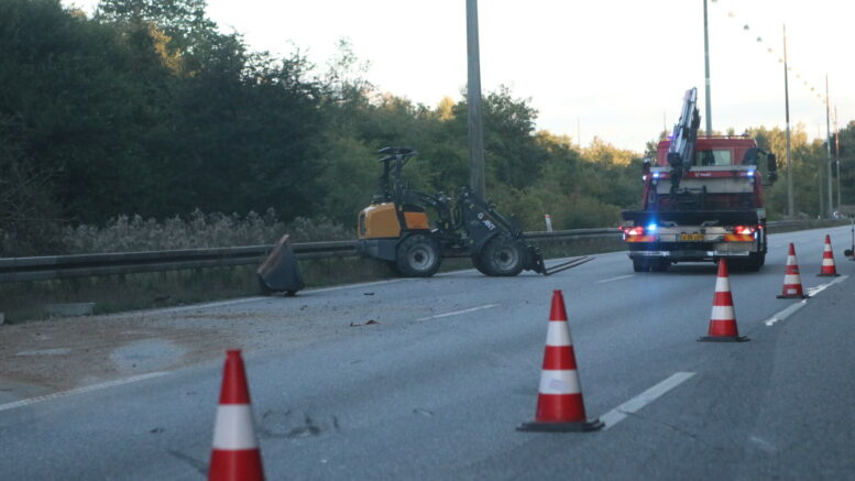 Se billederne: Gravemaskine tabt på motorvejen