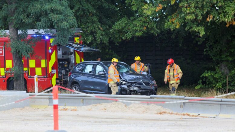 Se video: Bilist er braget ind i vejafspærring